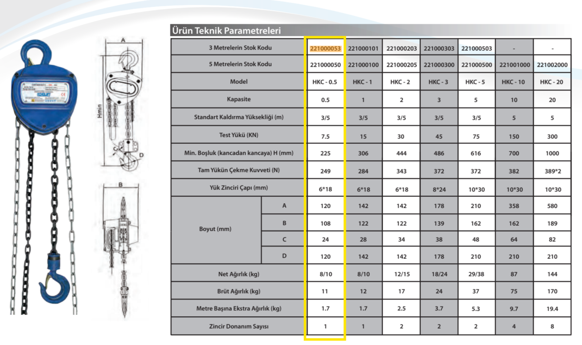 Elektrik gerektirmeyen zincirli mekanizması, hassas ve kontrollü kaldırma imkânı sağlar. Atölye, bakım, montaj ve depo uygulamalarında pratik ve güvenilir bir çözümdür.