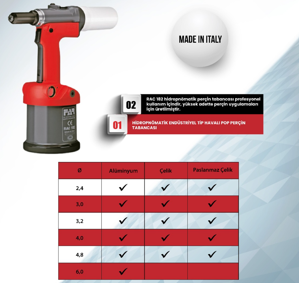 Far marka pop perçinler, sağlam ve dayanıklı yapısı sayesinde geniş bir kullanım alanına sahiptir: