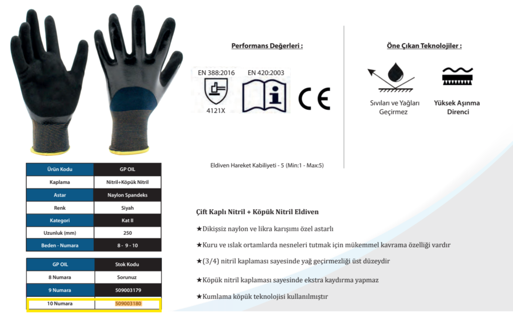 HEGI Safety GP Oil Köpük Nitril Montaj Eldiveni No:10 | 3/4 Kaplı İş Eldiveni