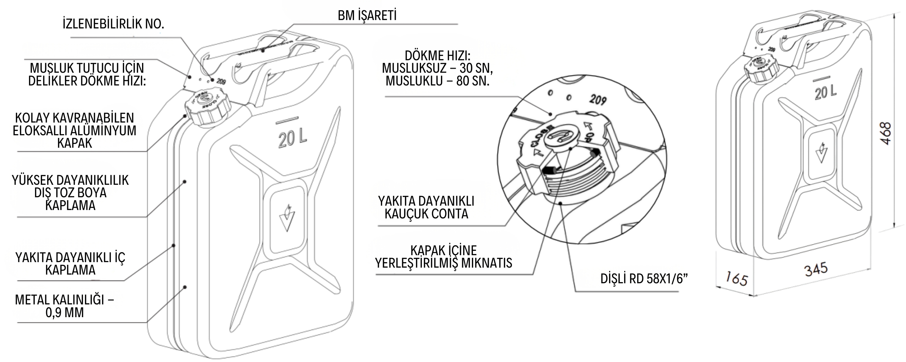 Araçlarda, jeneratörlerde, kamp alanlarında, tarım ve iş makinelerinde güvenle kullanılabilir. Özellikle uzun yolculuklara çıkan sürücüler için yedek yakıt bidonu olarak vazgeçilmezdir.